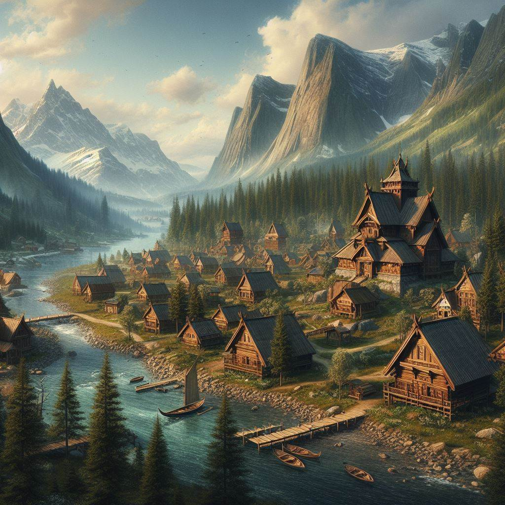 Led by the venerable Jarl of Uppsala, this land embodies a harmonious blend of culture and spiritual reverence, shaped by the imposing presence of the mountains and the life-giving waters of the river. From the Jarl's stronghold, perched high upon a rocky outcrop, one can behold the breathtaking panorama of peaks and valleys, a testament to the resilience and fortitude of its people.