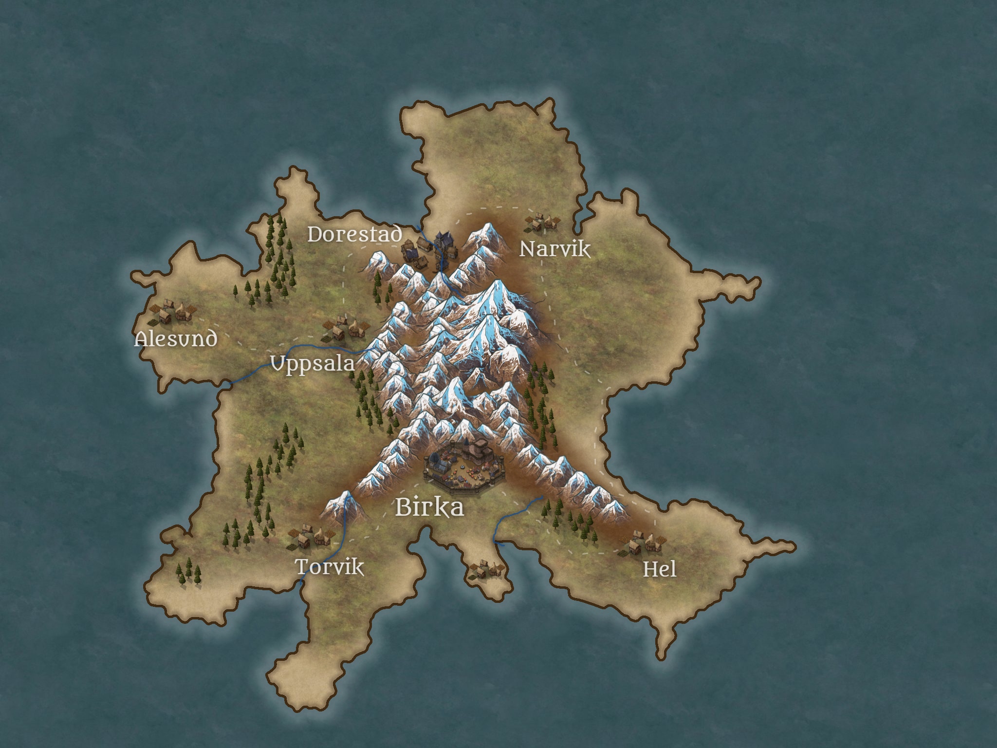 A lovely, safe town in a sheltered bay. Another common place the Agerians muster to raid south. Connected to Birka by a well-used trail.