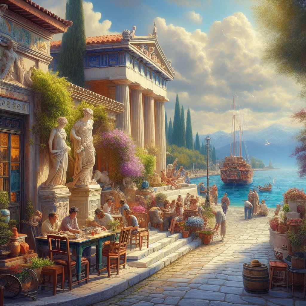 Even in this hub of politics and administration, the arts flourish. Statues of legendary lawmakers and heroes line the pathways, and intricate mosaics depict scenes of historical significance, reminding all of Olympia's storied past and the principles that guide its future.