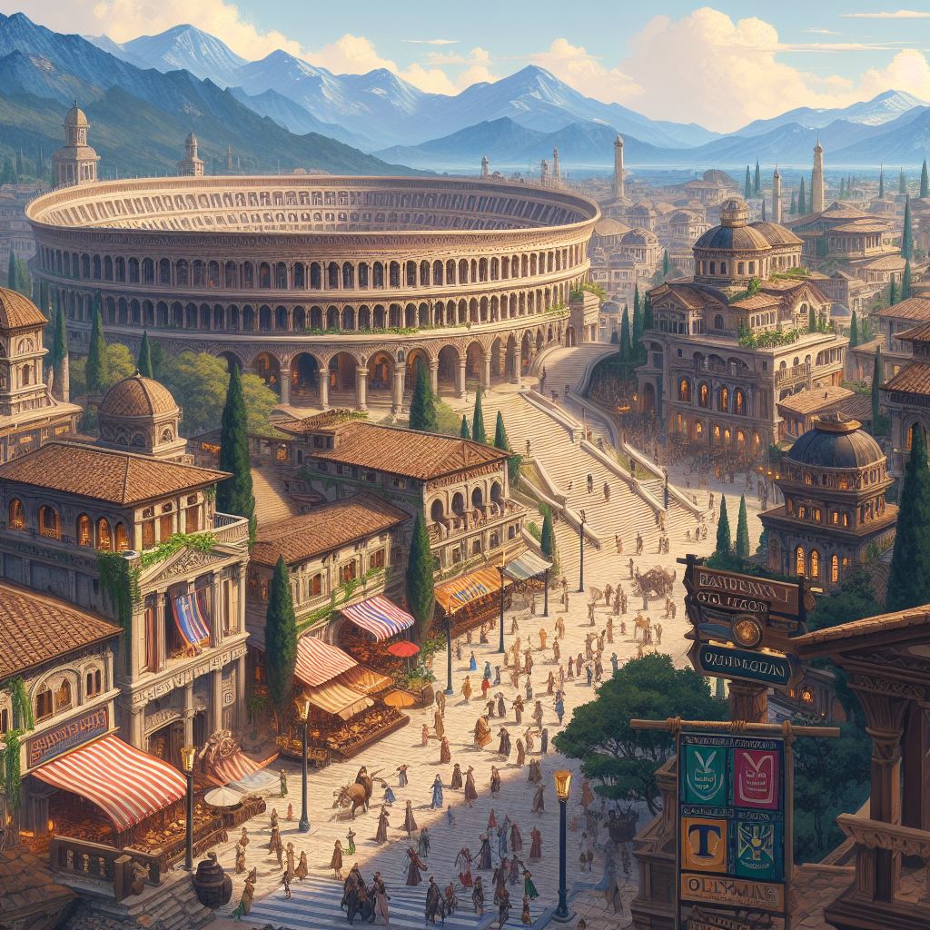 The Entertainment District of Olympia is a symphony of revelry and spectacle, where the joyous spirit of the city is on full display. At its center is the Grand Plaza, a vast open space framed by towering columns and statues of deities embodying mirth and play. The plaza serves as a stage for festivals and gatherings, its marble tiles echoing with the laughter of citizens and the melodies of street performers.