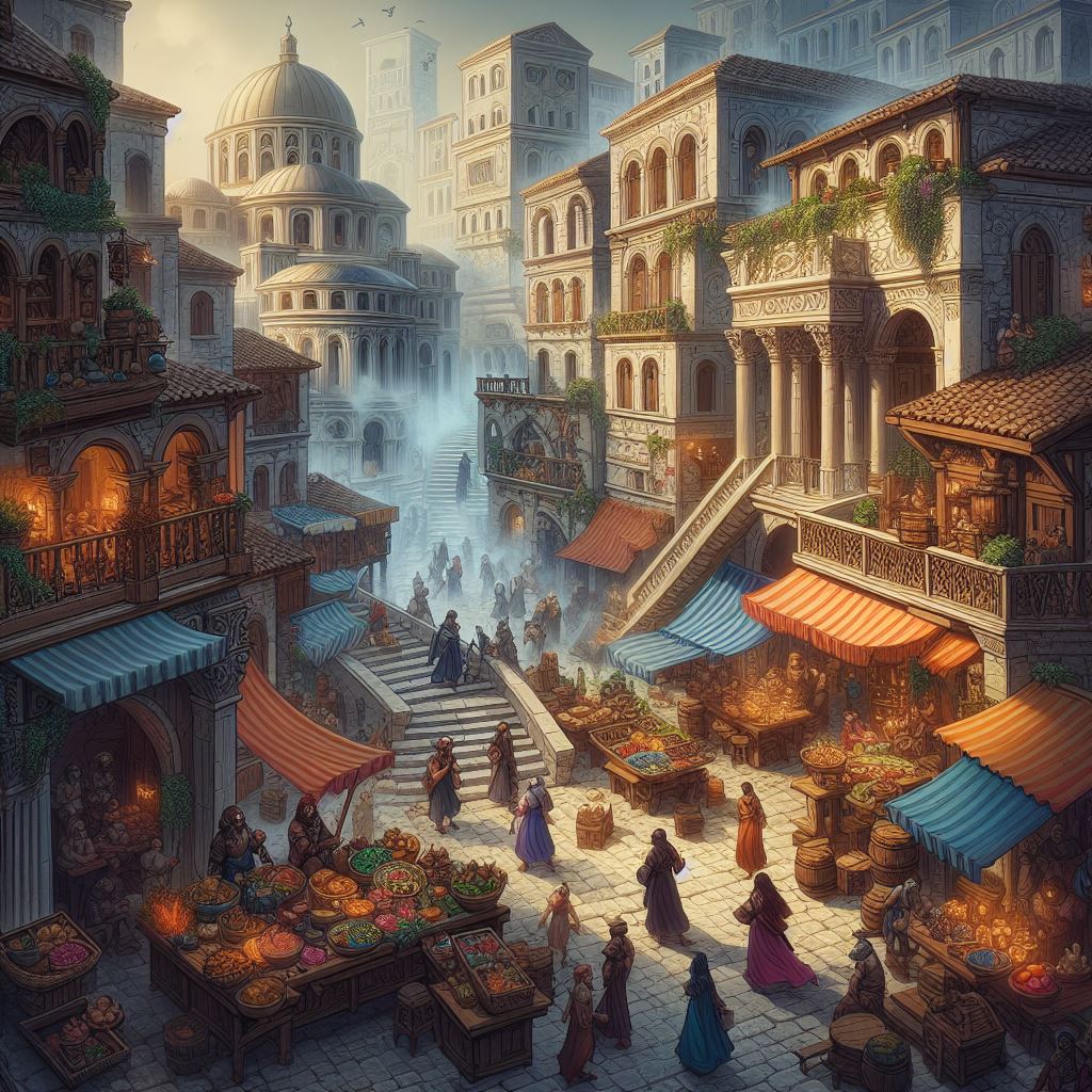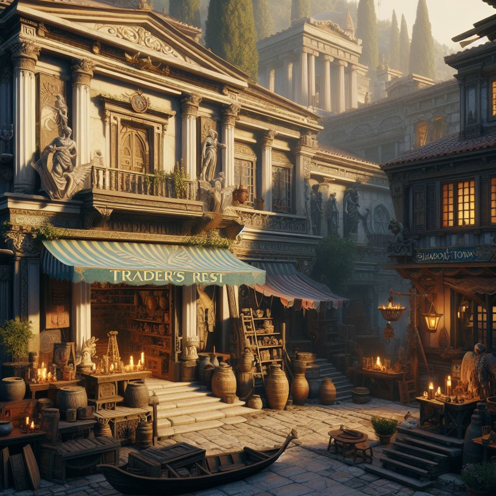 Bards recite epic poems in open squares, competing for the crowd's adoration and coins. Philosophers debate under the shade of olive trees, surrounded by eager pupils. The district is not just a place of trade but a crucible of ideas and artistry. The proximity to the harbor infuses the district with a nautical charm. Shipbuilders and sailmakers ply their trades, and taverns are filled with tales of distant shores and perilous voyages. This is a place where the spirit of adventure and the pursuit of beauty coexist, making the Merchant District the pulsing heart of Olympia's cultural and economic life.